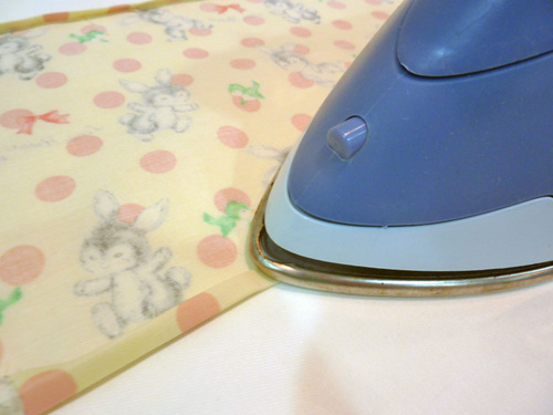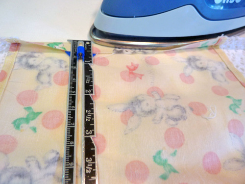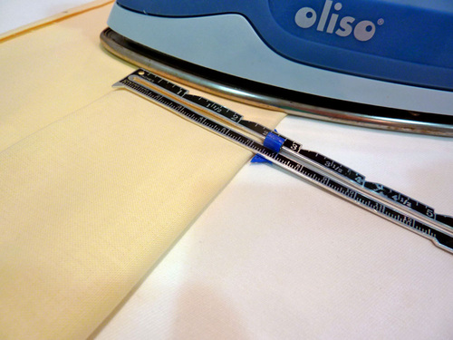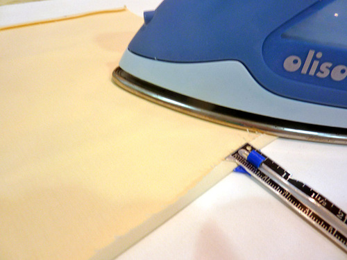 - Fold and press the side edges, lightly pin in place, and edgestitch to secure.