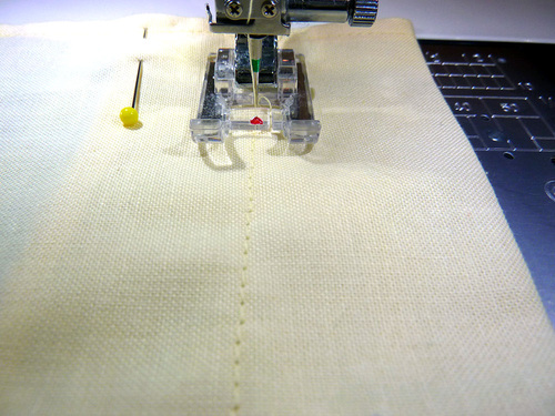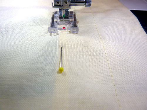 - Re-thread the machine with the contrasting thread in the top and bobbin. We used a soft gray for both valances.