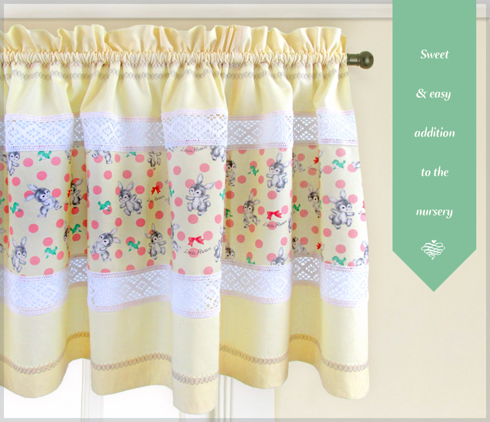 The softness of the fabric and the lace will affect the drape and gather of your valance. On our baby valance, we used thinner, softer cottons along with an equally soft lace. This created tighter gathers and a more billowy effect to the panel.