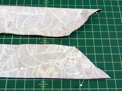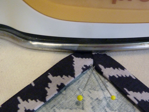 - Pin the long side and across the angled end of each tie.