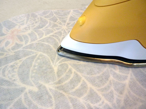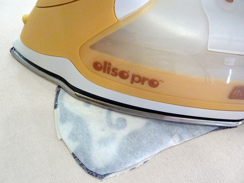 - Following manufacturer’s instructions, adhere the fusible web to the wrong side of the fabric directly behind the motif.