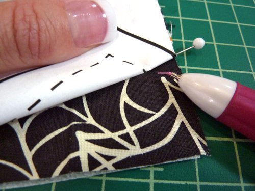 - If necessary, place the pattern piece over the folded edge again to re-check the position of the button.