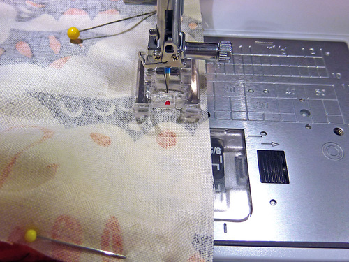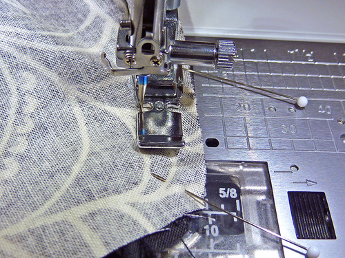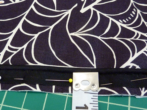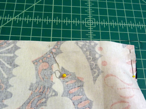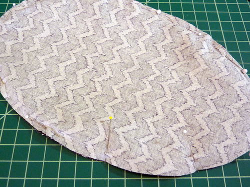 - Pin in place along the two sides and across the top curved edge. The bottom remains open.