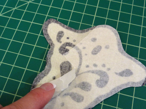- Cut a piece of paper-back fusible approximately 1″ larger all around than the motif.