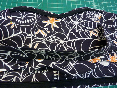 There’s also a friendly little appliquéd ghost flying across the bodice. Isolating individual motifs like this from within a fabric is a great way to highlight a design – especially when working with seasonal prints, which lend themselves to themed elements that can be pulled out and featured. When shopping for your fabric, look for a collection that offers larger motifs that could work for these kind of appliqués. Of course, it’s also your choice to skip the appliqués.