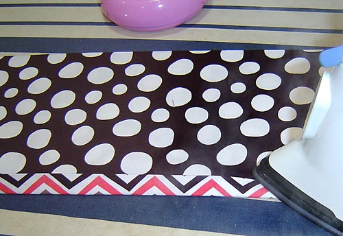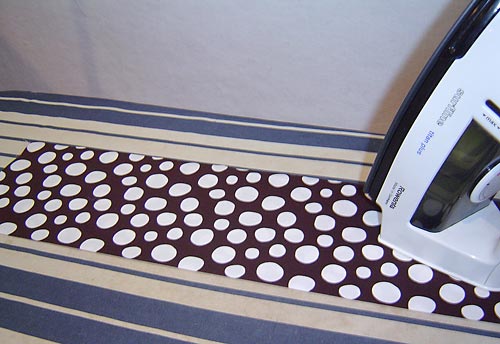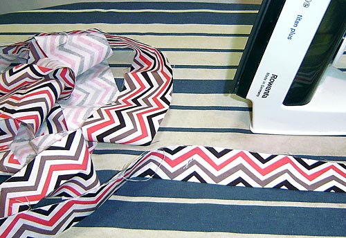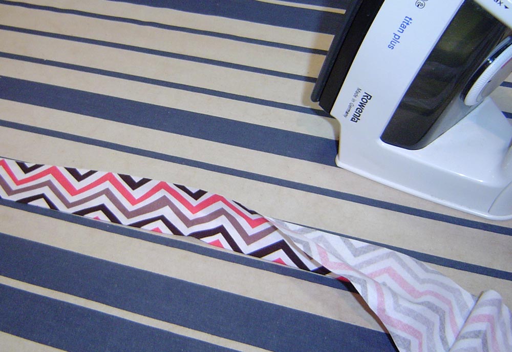 - Press the entire long binding string in half lengthwise, wrong sides together.