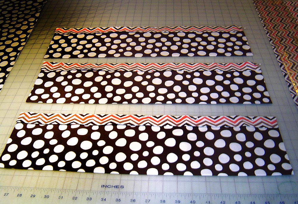 - Cut three 12″ x 22″ rectangles for the pocket panels also from the main body fabric.