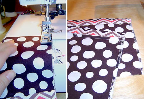 - Using an overcast stitch, a zigzag stitch, or a serger, finish the raw edges along both sides of each pocket panel.