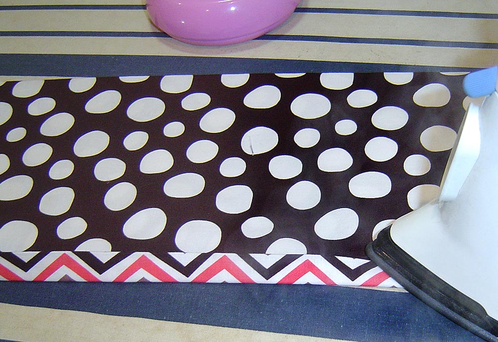 - The binding should now be a perfect fit against the caddy. Press this loose section of the binding in half wrong sides together (into its original shape).