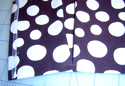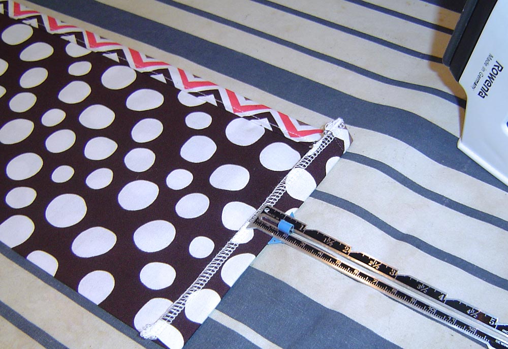 - To make each pleat, pinch the outside marks and fold them in to the middle mark. For example, for the left pocket: pinch the fabric at the 3″ mark with your left hand, pinch the fabric at the 4″ mark with your right hand, then fold both sides in to meet in the middle at the 3½” mark. Press well.
