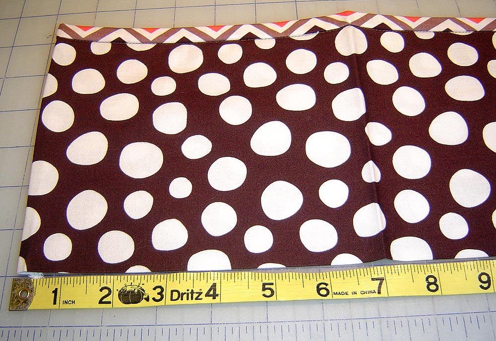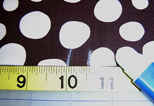 - You are going to make marks at specific points in order to create the pleats of each pocket. Place a mark at each of the following measurements, working from left to right: