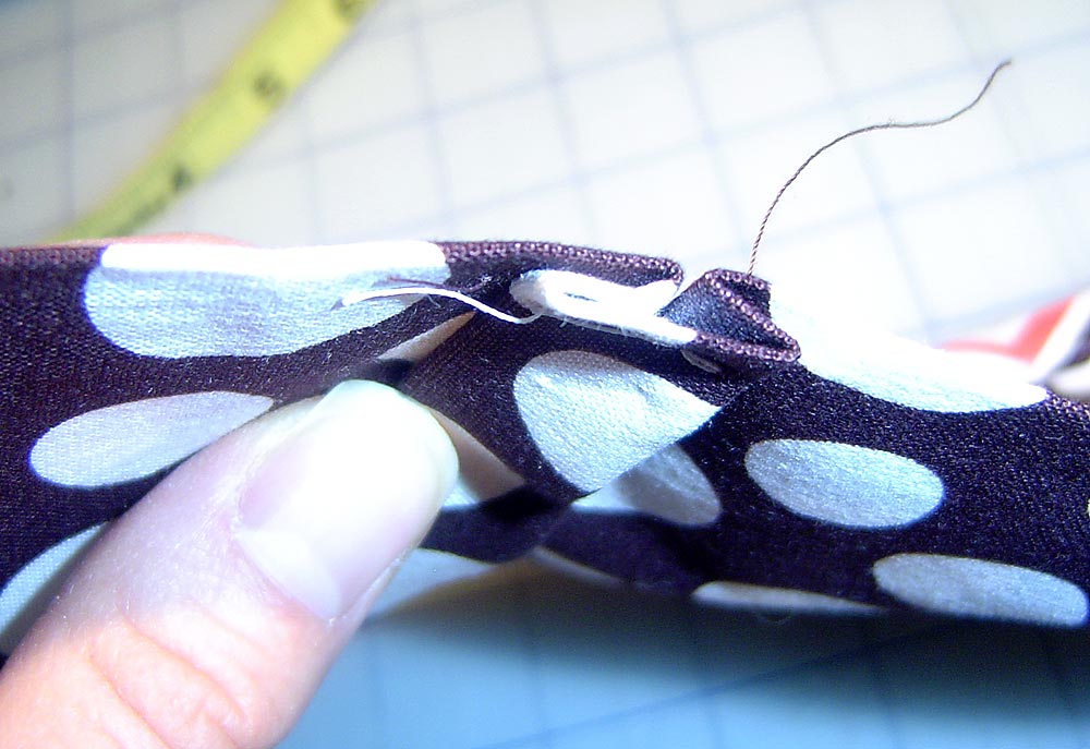 - Using a straight stitch, sew ‘in the ditch’ – again, this is right along the seam line of the panel and the binding.