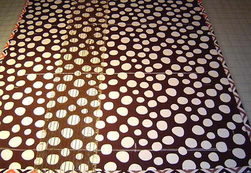 - Cut six 2½” x width of fabric (WOF) strips from the binding fabric (Woodland Delight Brick Path in Brown in our sample).