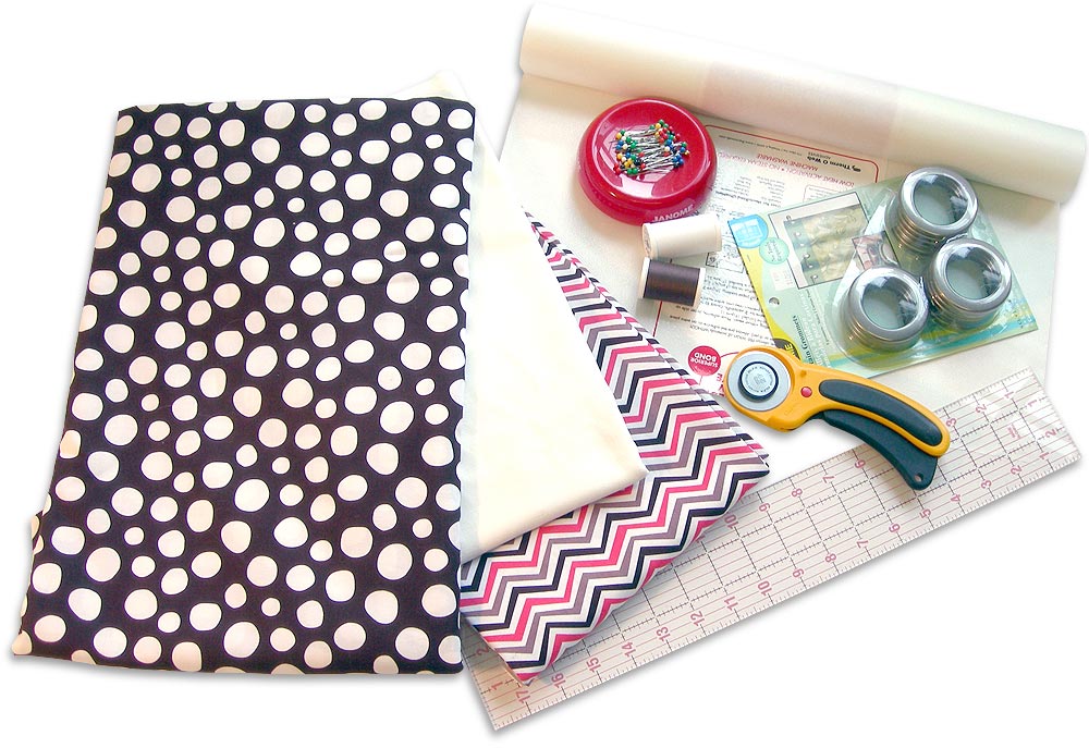 NOTE: For more about this topic see: Understanding Interfacings - Two 1-9/16″ drapery grommets to coordinate with fabric (they come in packs of 8; you will only use 2): we used Dritz®Home Drapery Grommets in Pewter (they’re snap-on!)