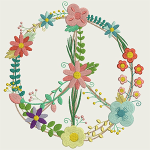 | This smaller version of Peace Word with flowers is designed to fit the Grand Hoop designed for the MC12000 and MC15000. A template is provided so you can position the design and mark the center crosshair. | ||