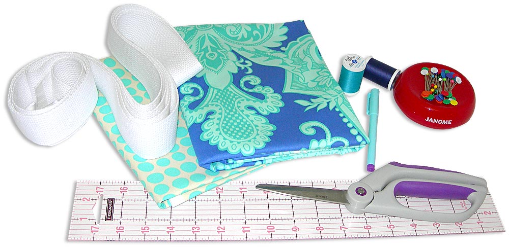 We recommend choosing a heavier weight fabric for the bag so it’s sturdier and wears well. Our original sample was made from Amy Butler’s Love collection, which is no longer readily available, but there are always lots of great new fabrics coming out from which to choose.