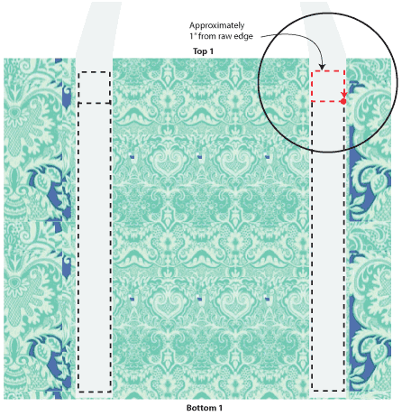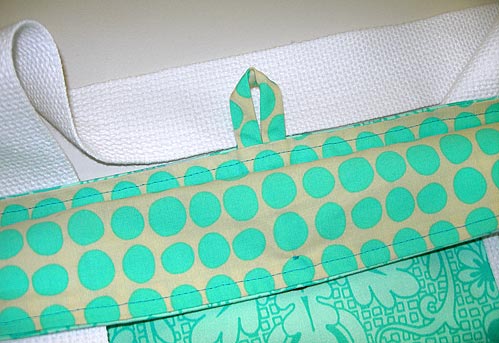 - Topstitch around the entire top of tote. This flattens the top edge of the bag and seals the opening used for turning. For the cleanest look, fold the handles down and stitch BEHIND the handles not over the top of them.