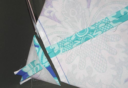 - Trim away the top of each triangle approximately ½” from the sewn line.
