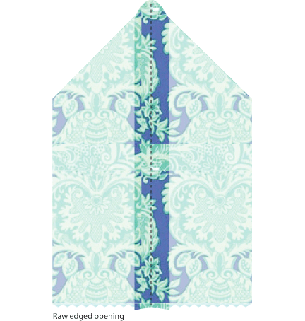 - Turn right side out and press the top edge flat, pressing in the raw edges of the opening so they are flush with the sewn seam.
