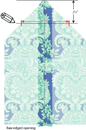 - Measure 2½” down from the end of the of the seam and use your fabric pencil to draw a line straight across the