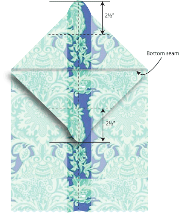folded fabric. Your line should be at a point that is 5″ wide. - Repeat on the opposite side. Check to make sure your two drawn lines are at the exact same place on both sides.
