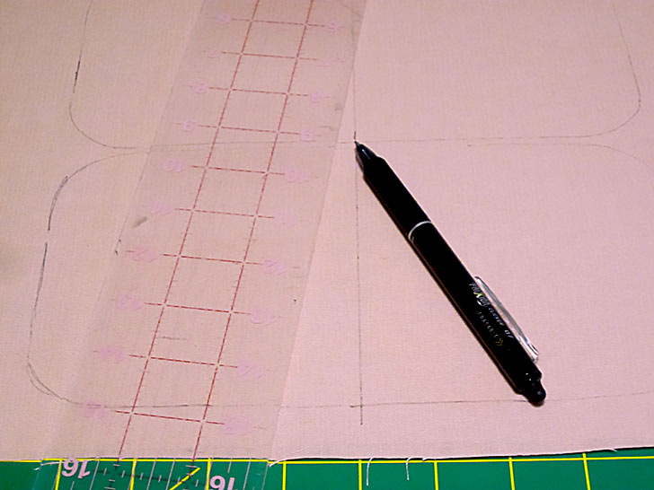 - Using the paper pattern, transfer the pattern shapes onto the front of the linen. Center the shapes side to side and stack one on top of the other. The two shapes should be nearly touching yet not overlapping.