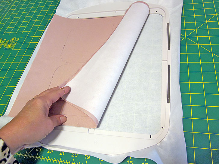 NOTE: This was the appropriate size to fit our Janome GR Hoop; should you select another design that requires a different hoop, adjust your cut size accordingly to best fit your hoop.