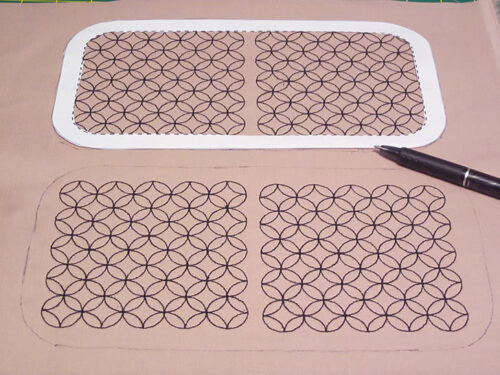 - Place the frame over each pair of designs, centering the designs within the frame. Tape or simply hold the frame in place, and re-draw the perimeter cut lines.