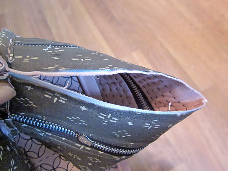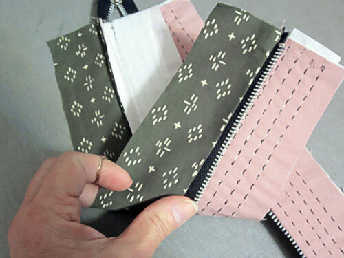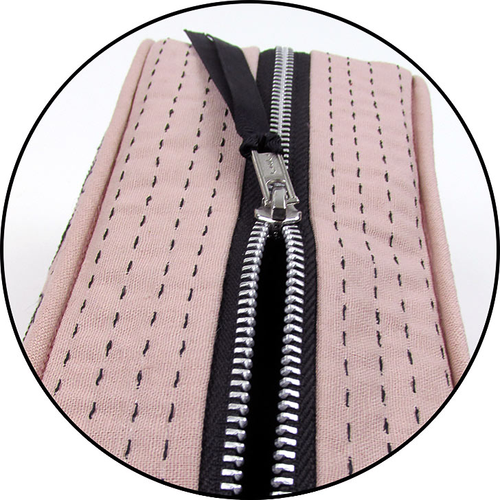 - Because of the beautiful Sashiko style stitching, you do not want edgestitching to show on the right side (the linen side) of the zipper unit, but you do still need to secure the layers so the zipper unit will lay nice and flat.