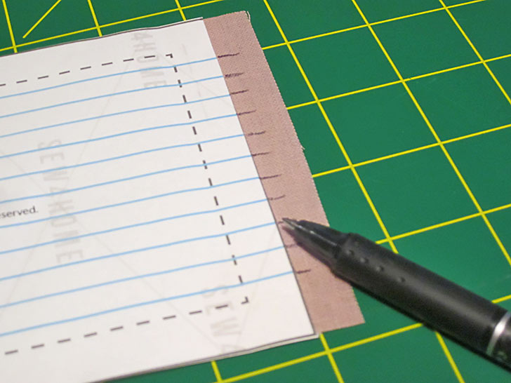 - Then repeat the process once more with the side loop to mark quarter points along each of its raw edges.