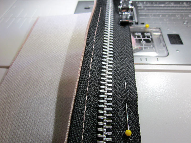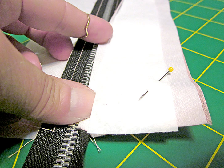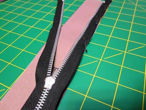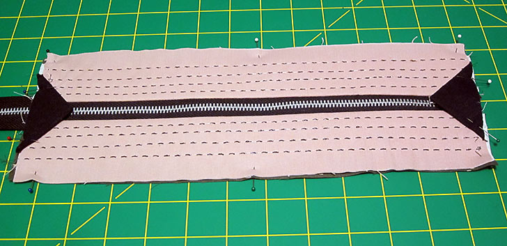 - Repeat to add the remaining lining strip to the other side of the zipper in the same manner.
