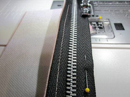 - Edgestitch the lining to the zipper tape. Repeat on the other side.