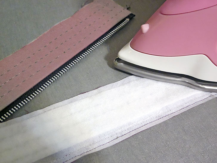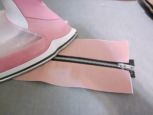- Press both strips away from the zipper teeth so they are now wrong sides together.