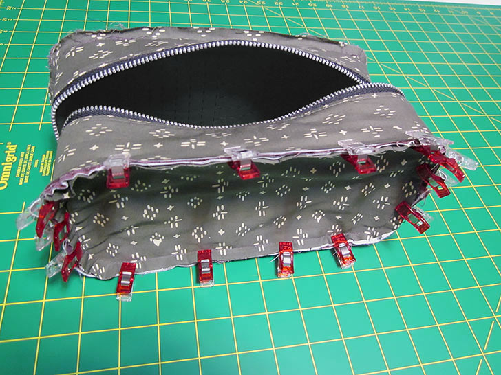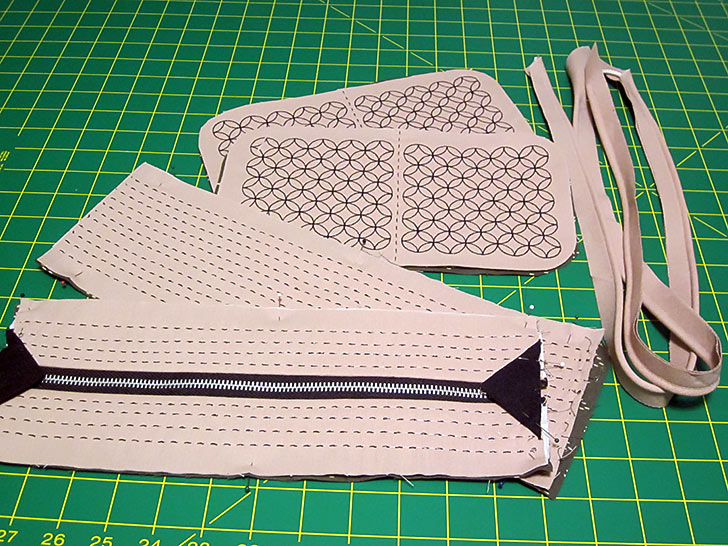 NOTE: The photo below also shows the base panel, zipper panel, and pull tabs. Hang on to those; you’ll put them together in the next section.