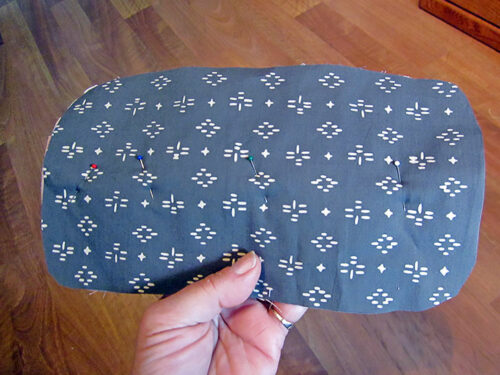 NOTE: When trimming the front/back panel, carefully cut out the oval shape, leaving an outer “frame” made up of just the ½” seam allowance. You’ll use this frame later to center and confirm the final cut line for the embroidered front/back panels.
