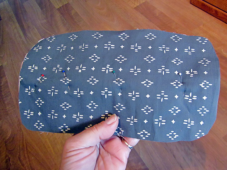 - Find the back panel. Fold it in half and place a pin at each edge of the fold.