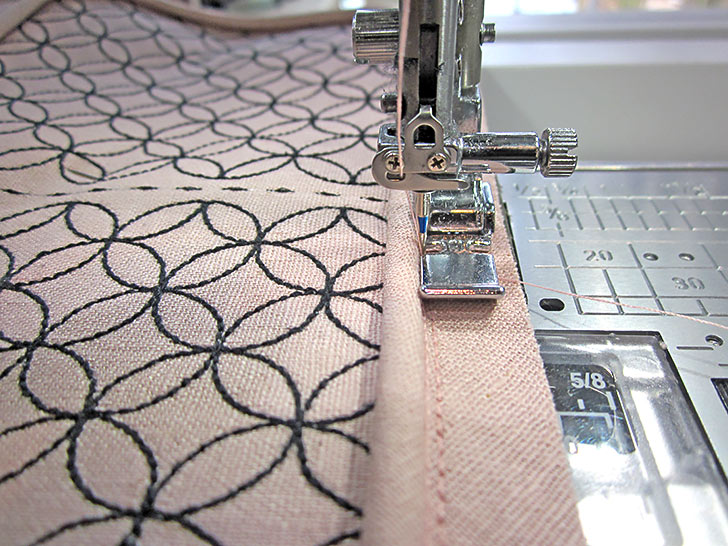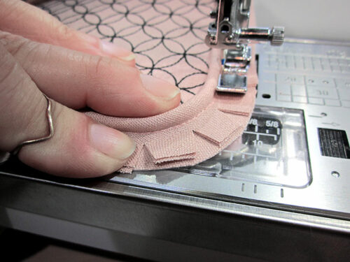 - To flatten the interior seam allowance and “stiffen” it so it is easier to bind, we suggest going around each seam one more time to finish the edge. We used a zig zag stitch.