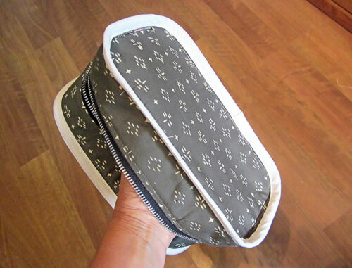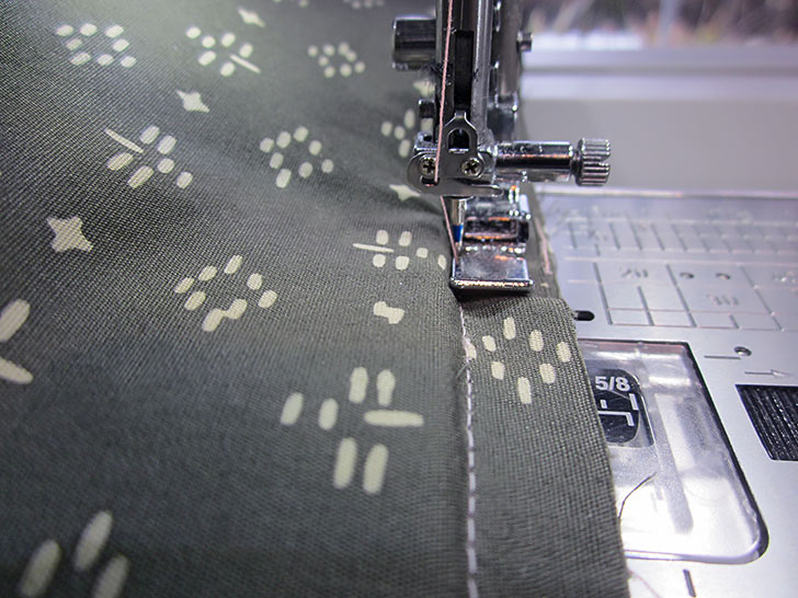 - This process yields a seam allowance that will be visible on the interior of bag. We recommend finishing these two short seam allowance with your favorite machine finishing stitch in matching thread, such as a zig zag stitch or an overcast stitch. When the pouch is completed, these seams are quite deep into the sidewall of the pouch and will not be very visible, however, a finished edge is recommended. We used a simple zig zag.