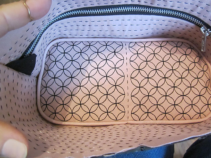 - Here’s a shot looking down into the pouch with the first panel stitched in place.