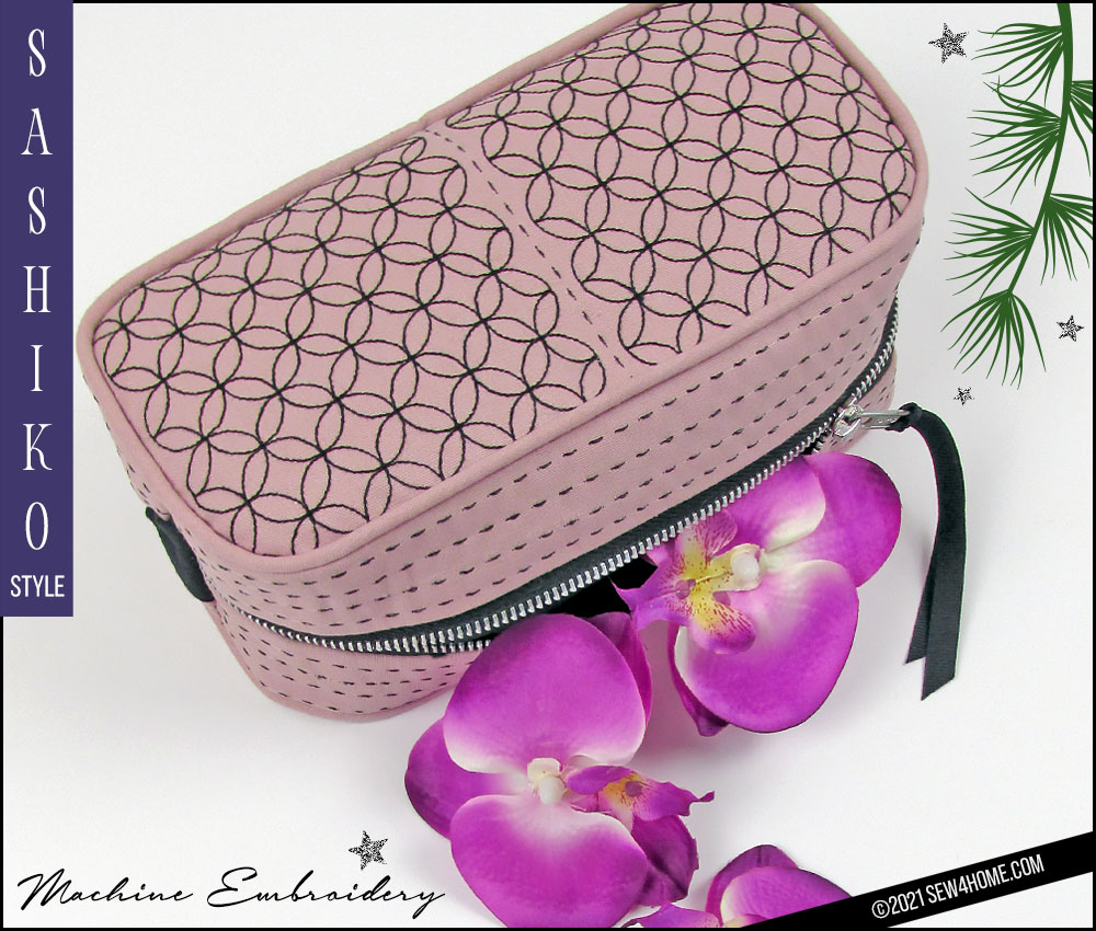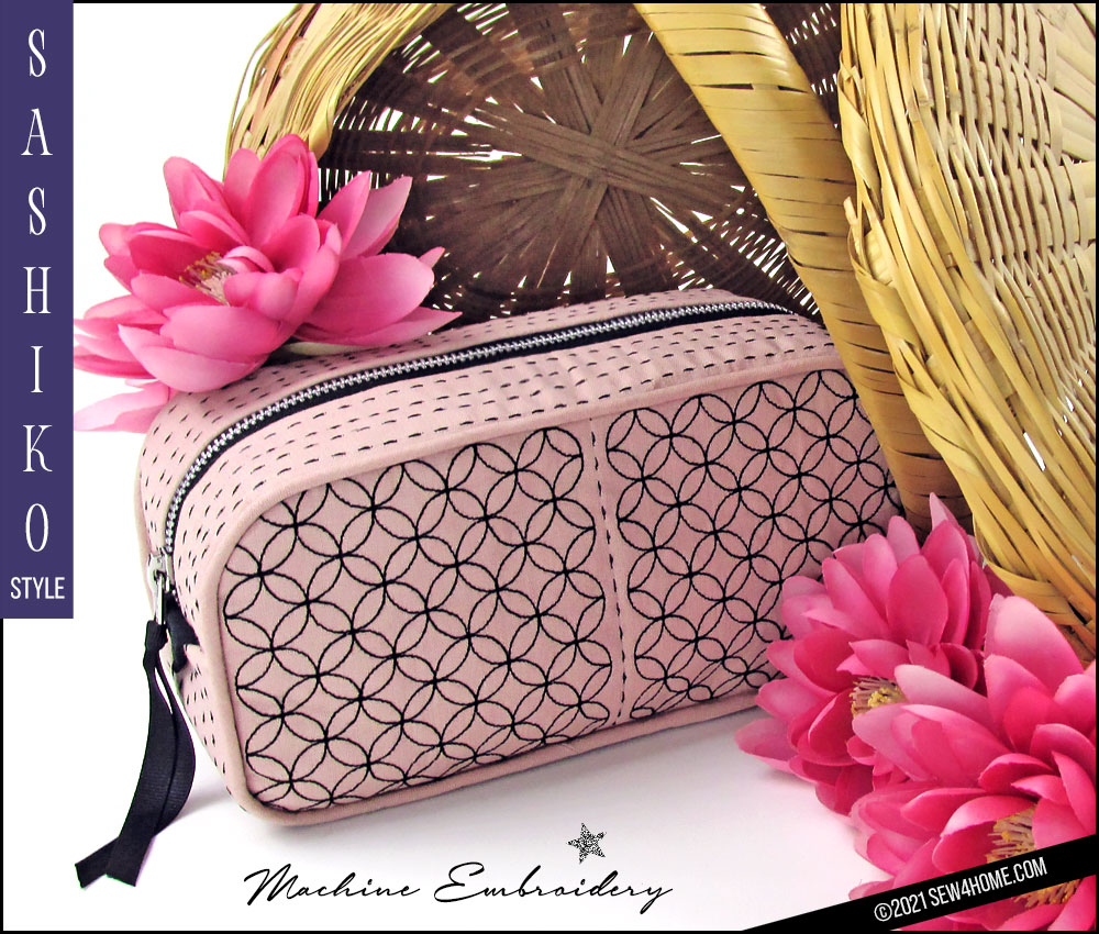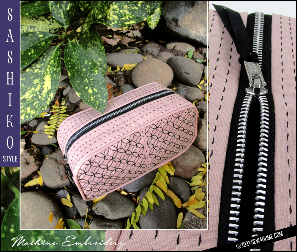 Our thanks to Janome America for introducing us to the joys of Sashiko style stitching and for sponsoring this project, including the free pattern download that contains all the pieces you need to create the zippered case.
