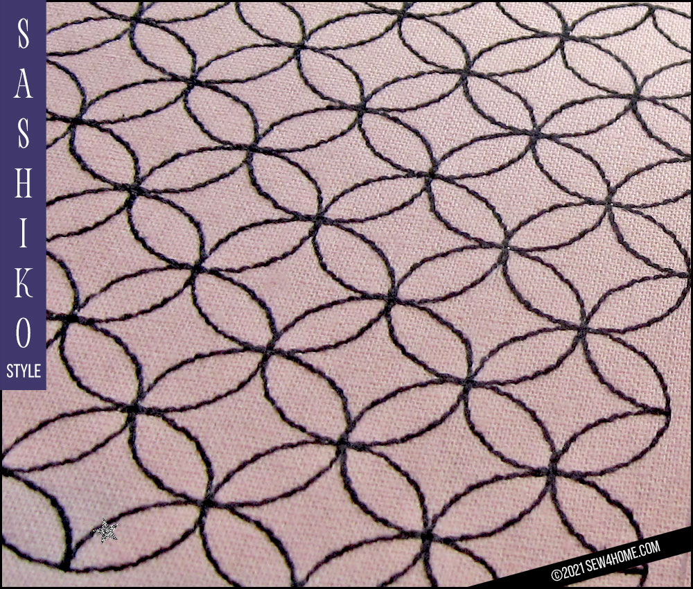 As a Japanese company, Janome was one of the first to incorporate Sashiko stitching options into their sewing and embroidery machines. Sashiko, which literally means “little stabs” is a traditional Japanese folk art that dates to the Edo period in Japan. The repetitive and interlocking stitching allowed villagers in rural farming and fishing communities to reinforce and reuse old garments and bedding at a time when people couldn’t afford to throw out even the smallest scraps of fabric. These layers of fabric, held together with the Sashiko stitching, provided warm and lasting protection from the elements.