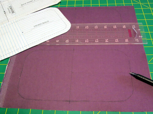 - Using the paper pattern, transfer the pattern shape and the stitching guide lines to your fabric. It is easiest to first draw in the outer perimeter shape of each panel, the vertical starting line, and the middle horizontal line.