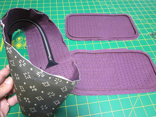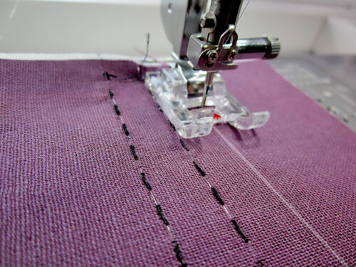 - When done with the Sashiko style stitching, once again re-set the machine for standard straight stitching with construction thread to best match the fabric in the top and bobbin. Don’t forget to re-attach the Zipper foot.