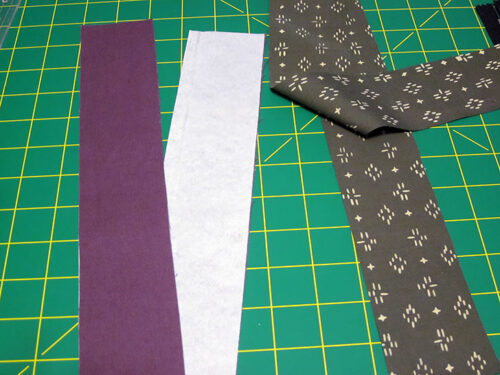 - Set aside the two lining strips for now. You will first be working with just the exterior strips to do the Sashiko style stitching.