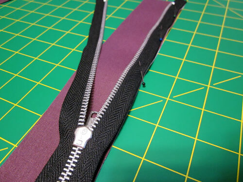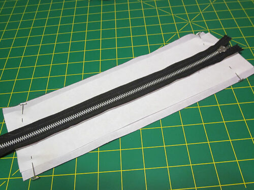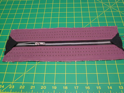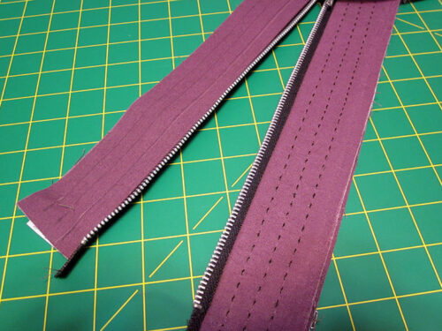 - Repeat to add the remaining lining strip to the other side of the zipper in the same manner.