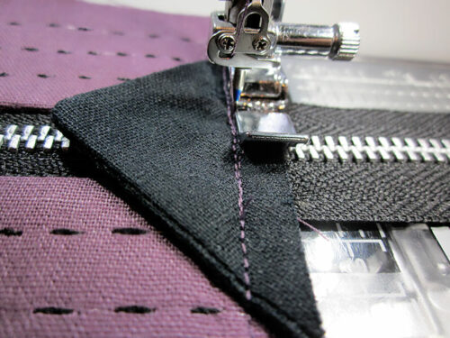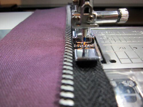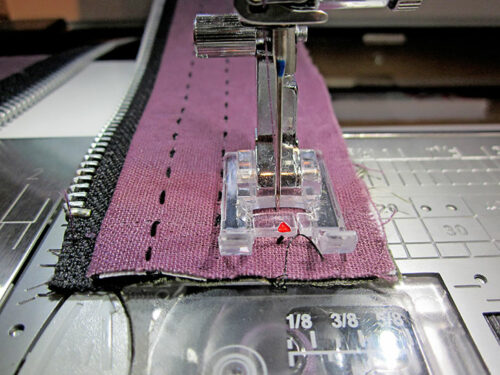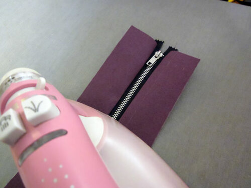 - Stitch one side and then the opposite side. It helps to stitch with the zipper fully open.