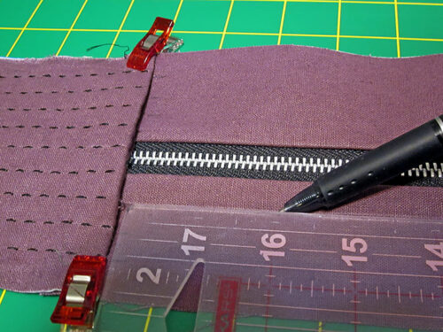 - Draw in the full guide lines to either side of the zipper.