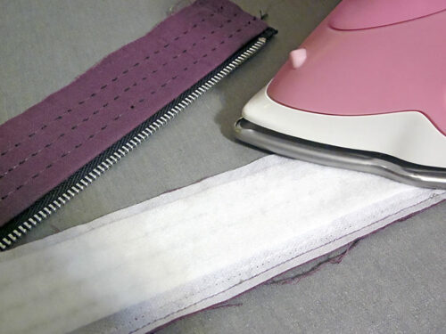 - Attach a Zipper foot and stitch the length of the strip.