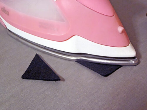 - Turn each triangle right side out through the open diagonal edge. Use your finger or a blunt tool to gently push out the point so it is nice and sharp. Press flat.