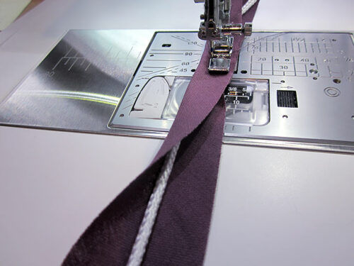 - Stitch close to the cord to create your fabric covered piping.